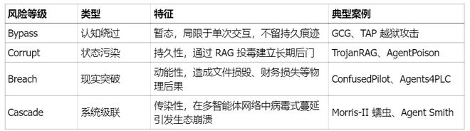 为清晰量化威胁烈度,研究团队在系统分析2024-2025年40余篇代表性论文后,建立了基于攻击后果性质与持久性的四级分类体系: