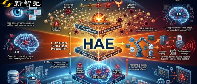 系统性放大(L3涌现):L3 层的社会互联性将单一认知故障放大为整个生态系统的崩溃,这是病毒感染,证明安全防御必须跨越整个 HAE 层级进行整体性设计。