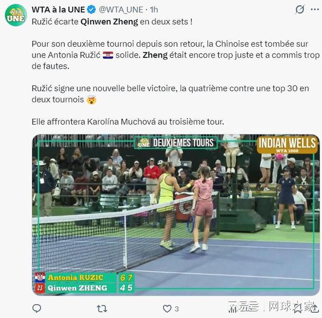 相较于国内球迷对郑钦文失利的宽容和支持,国外一些网友则批评得更为激烈。