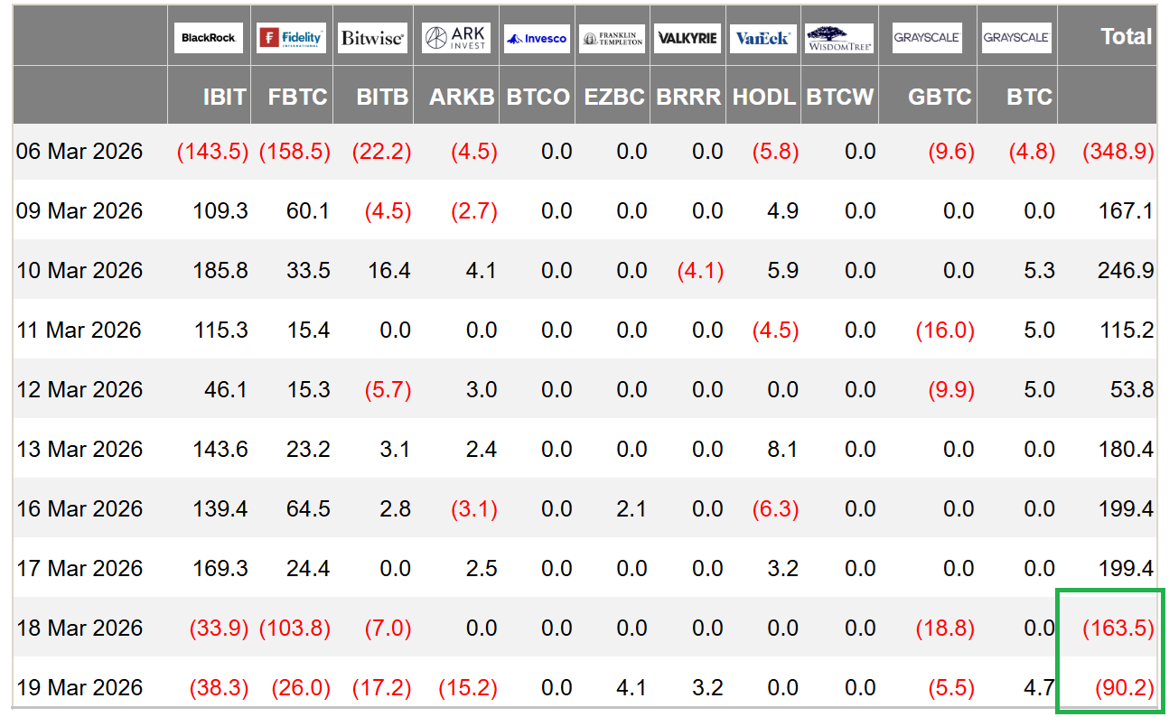 两天净流出2.54亿美元的比特币ETF不太可能表明机构投资者已转为看跌,但市场并不确信比特币能坚守68000美元关口。交易情绪主要受到宏观经济状况恶化及持久战争不确定性影响,投资者对衍生品的下行保护需求日益强烈。