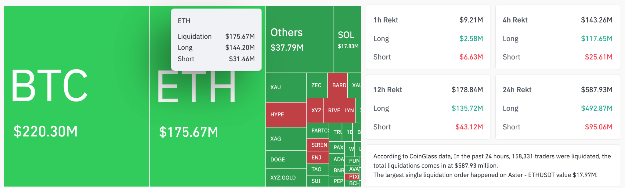 ETH面临着超过25亿美元的多头仓位爆仓风险。