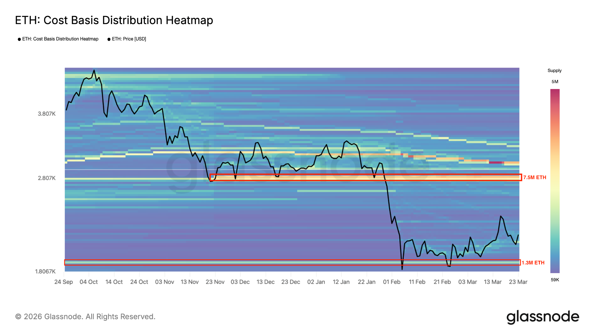 Glassnode的数据显示,在2750美元至2850美元区间内,投资者累计购入了超过750万枚ETH。