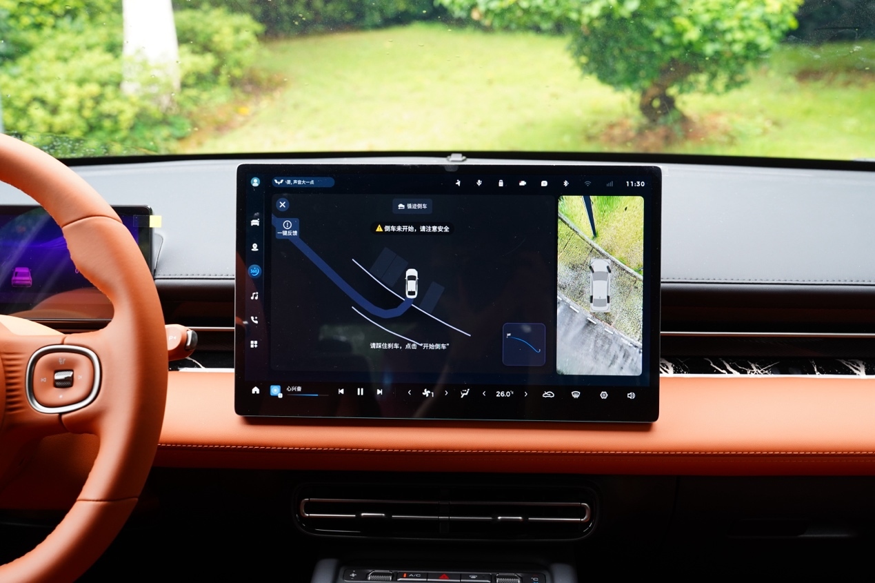 真正打动我的变化在于中控大屏的操作界面明显升级:响应速度更快、操作逻辑更为清晰,并且功能也更加全面。以往觉得它像是摆设的功能这次真正派上了用场。新车还增加了自动泊车、循迹倒车和窄车位停车等功能,实际演示效果良好,在雨天停车场测试时准确率较高。