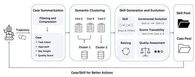 难题二:从碎片经验到结构化技能的自进化(不仅要能「记」,更要能「学」)