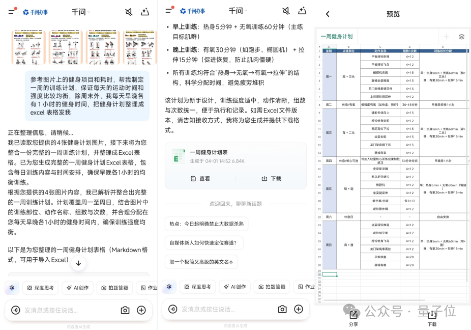 无论是随手拍摄的健身计划、打印出来的课程表还是皱巴巴的报销单据等都可以通过千问进行准确识别并整理成规范化的表格形式。