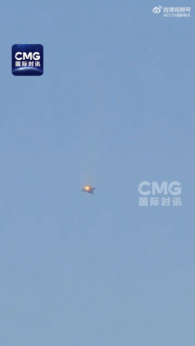 社交网络上流传的视频展示了飞机尾部起火并从空中坠落的画面。