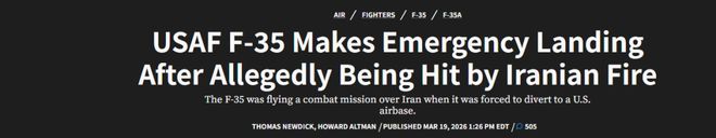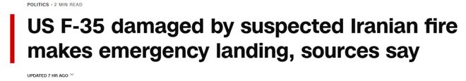 CNN指出,这是自2月底以来,伊朗首次击中美国有人驾驶飞机。美国和以色列在这场冲突中使用了多架F-35战机。