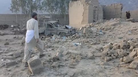2月22日,巴基斯坦发动袭击后阿富汗楠格哈尔省的一处废墟