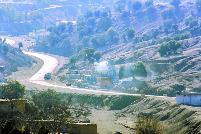 2月27日,阿富汗霍斯特省古拉姆汗口岸一侧的边境哨所发生爆炸后升起浓烟