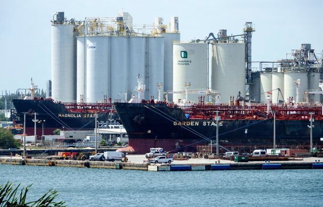 月初时,一艘满载石油的船只抵达了佛罗里达州劳德代尔堡附近的埃弗格雷斯港。