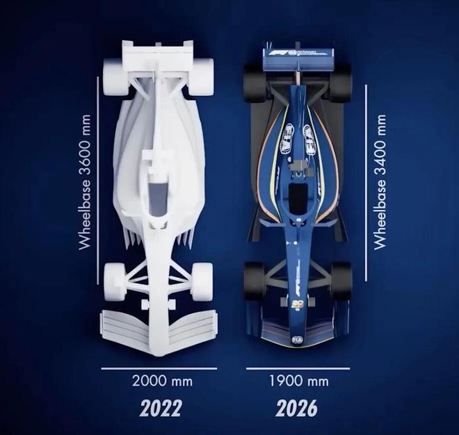 鉴于近年来F1赛车尺寸过于庞大,超车因此变得困难,2026年F1赛车终于迎来“瘦身”,轴距缩减了20cm并减重30kg,同时缩窄轮胎宽度,这使车手在入弯时能开得更加激进和有更多的切弯角度可以选择,尤其在摩纳哥及新加坡街道赛的窄弯中赛车将更加灵活,而不像此前798公斤的“宽体长轴巨兽”横亘于赛道中,使超车变得困难。