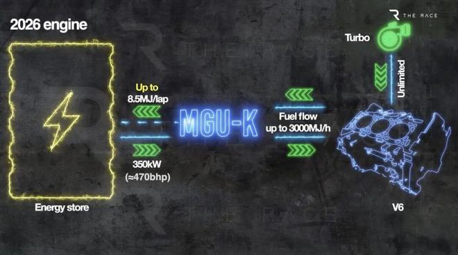 其中一项重要的调整是取消了MGU-H系统。该系统的缺失导致涡轮增压器在启动时更加依赖于内燃机产生的废气气流,这使得车辆的加速响应变得迟缓,并且增加了起步阶段控制难度。