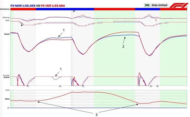 维斯塔潘在T13-T14之间获得速度优势