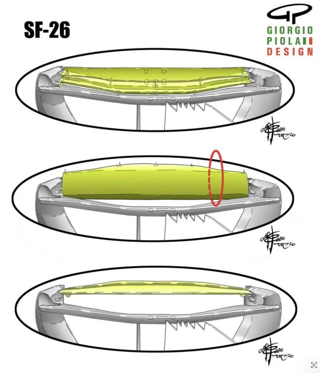 法拉利车队再次展现了“跃马”的攻击性。SF-26赛车的内燃机采用了更小尺寸的涡轮,虽然这在高温长距离下圈速衰减略大,且遇上高速赛道时会在超长直道“后程乏力”,但小尺寸涡轮可以改善大涡轮因“涡轮迟滞”所产生的发力迟缓;同时,SF-26赛车的变速箱齿比更短更紧凑,因此动力爆发干脆直接,特别在起步时可能优势明显。另外,他们不仅设计了排气管后部的襟翼,更推出那个惊艳众人的可翻转(Rotating)尾翼。这再次彰显了意大利人非同寻常的技术创新能力,只是这一设计能否真的成为经典,还需实战检验。