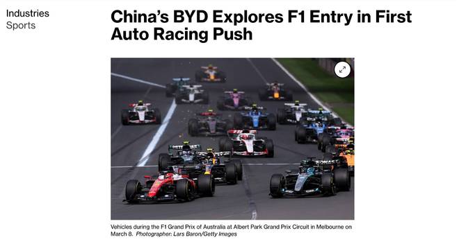 对于技术实力已经非常雄厚、希望提升品牌形象的比亚迪而言,参加 F1 是一个高效的选择。
