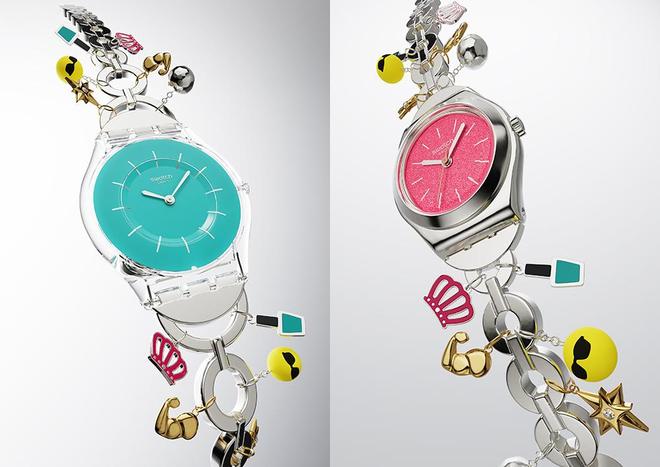 同样是在 3 月 2 日,Swatch 推出了两款专为母亲节设计的腕表——“无敌妈咪”和“百变妈咪”。前者采用直径 34 毫米的绿色松石色表壳,并搭配不锈钢链带;后者则是直径 26 毫米的粉色表壳,同样配有不锈钢手链。两款腕表均装饰有以表情符号为灵感设计的独特金属吊饰。
