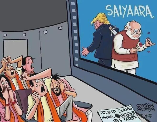 特朗普对印度加征关税 漫画图