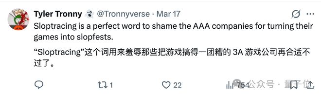 有人创造了新词“Sloptracing”,将AI slop(AI生成的低质内容)和Ray Tracing(光线追踪)拼在一起,嘲讽这项技术造出了不少“垃圾”。