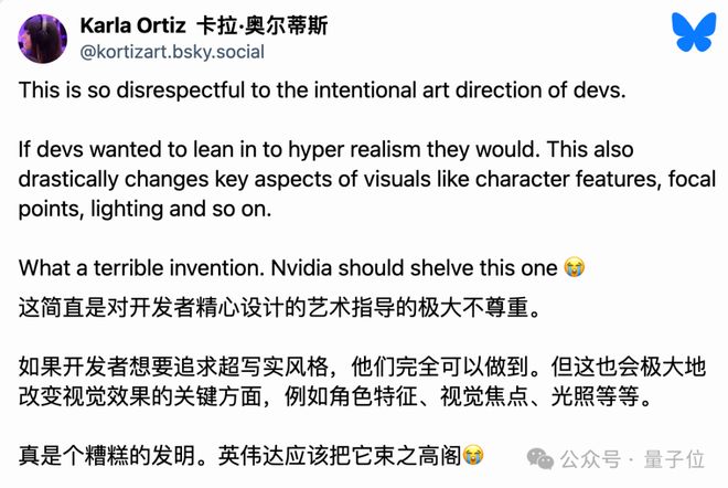 曾为育碧、暴雪、漫威等公司工作的波多黎各艺术家卡拉·奥尔蒂斯(Karla Ortiz)直言,这是对艺术创作者的不尊重。