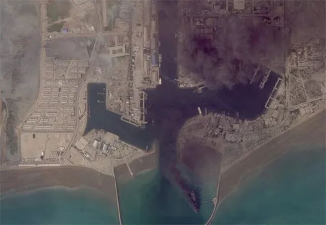 位于阿巴斯港的伊朗海上巨舰“马克兰”号已被美军击沉。