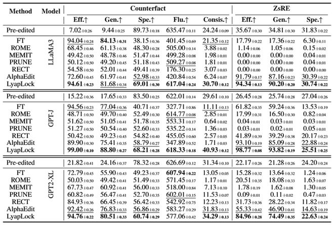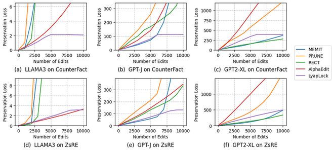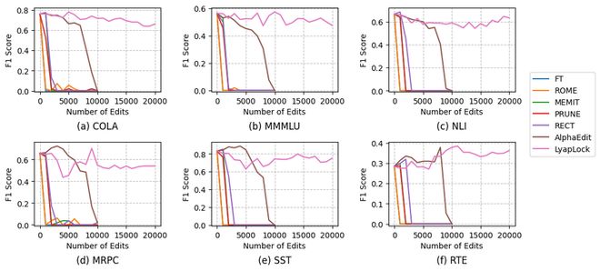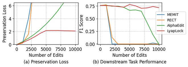 实验表明,LyapLock 在连续编辑超过10,000次的情况下依然能维持稳定的性能水平。相较于现有最先进方法,其平均编辑效果提升了约11.89%。此外,该技术还能增强其他基线模型的性能表现。