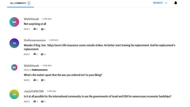 网友2:不知道陆军中将叶海亚·萨雷的保险是否覆盖导弹袭击的伤害。他最好赶紧培养接班人,而接替者的接班人也得尽快培养。