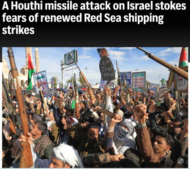 正如美联社新闻所说:胡塞武装对以色列发动的导弹袭击,加剧了人们对红海航运再次遭到袭击的担忧。