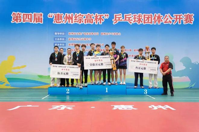 第四届“惠州综高杯”乒乓球团体公开赛于3月21日至22日在惠州市综合高级中学顺利闭幕。该赛事由惠州市文化广电旅游体育局和惠州市乒乓球协会提供专业指导,旨在弘扬国球文化,丰富校园体育生活,促进青少年体育事业的高质量发展。