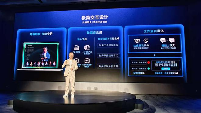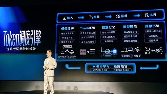 该设备集成了多项功能:开机即用、支持主流通讯软件以及具备自我进化能力,并且能够大幅节省Tokens资源。