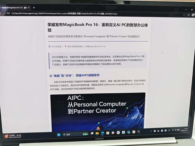 新的MagicBook系列轻薄本产品在AI能力上进行了重大更新,同时Pro 14型号还创造了长达16.7小时续航的新纪录。