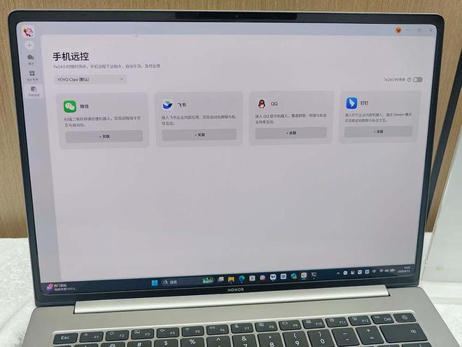 用户拿到荣耀笔记本后无需额外配置,即可直接使用龙虾功能;同时,可以通过扫描二维码快速连接如微信或飞书等应用,实现无缝通信。