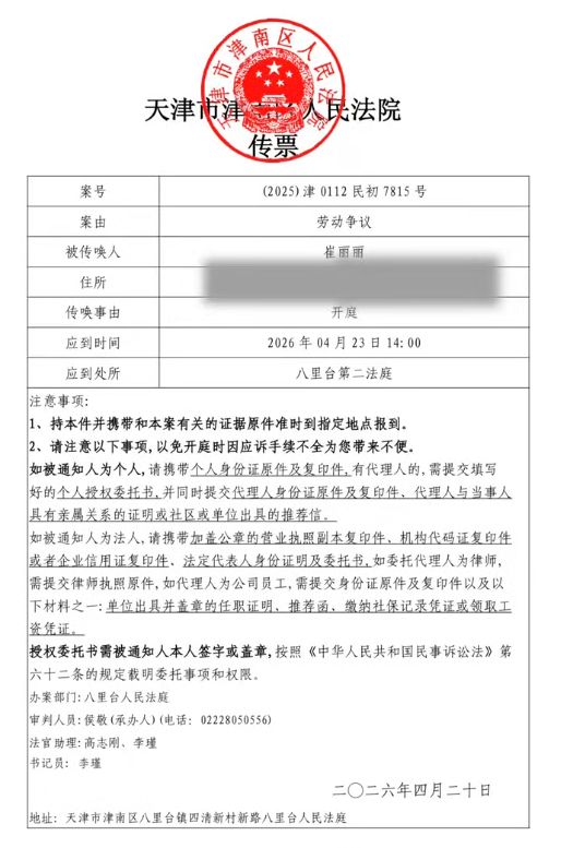 一起关于职场性侵导致精神工伤认定的诉讼案件,即“崔丽丽系列案件”中的工伤待遇劳动争议案,定于4月23日下午两时在天津市津南区人民法院八里台人民法庭开庭审理。