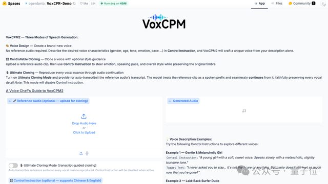 开源的VoxCPM 2,我们现在就可以在在线体验的网站上体验了(地址见文末):