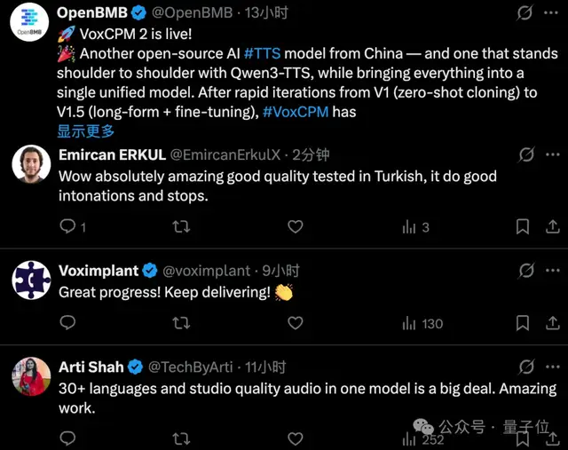 不少歪果仁在VoxCPM 2发布之后就立马去尝了下鲜,纷纷表示“自家语言的效果针不戳!”