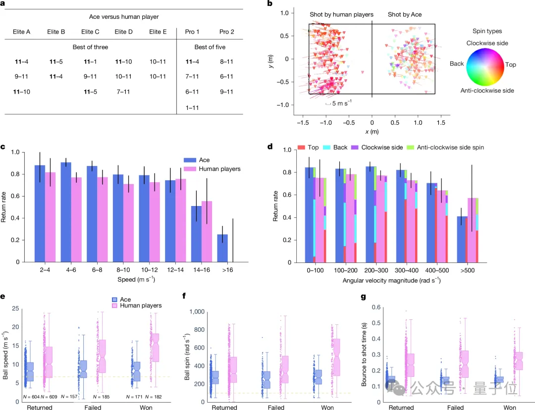 机器人Ace在对战中展现出了其出色的反应速度和精准度,从识别球到挥拍击打仅需20.2毫秒,而顶级人类球员则需要大约230毫秒。