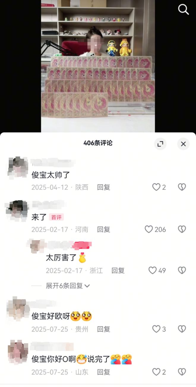 博主为小梦发布拆卡视频,评论区的称赞(某账号截图)