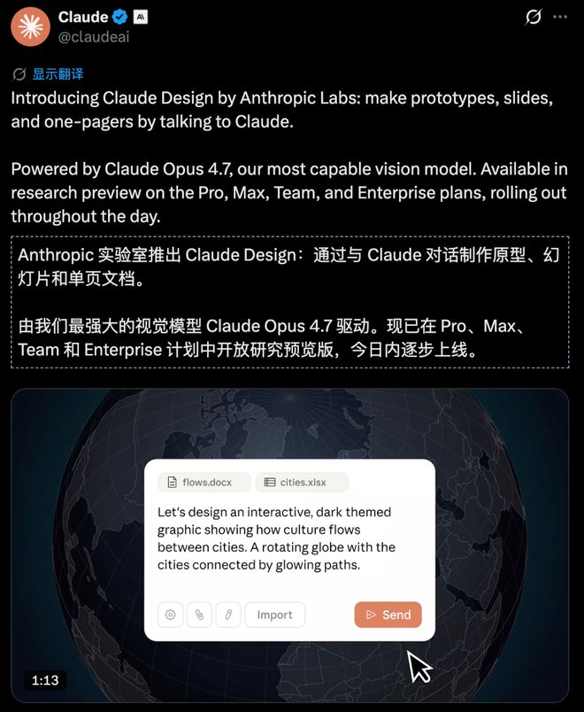 昨晚,Claude实验室发布了全新的Claude Design功能。