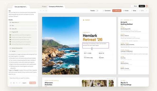 Claude Design的功能远不止于提供一个AI辅助的设计工具。