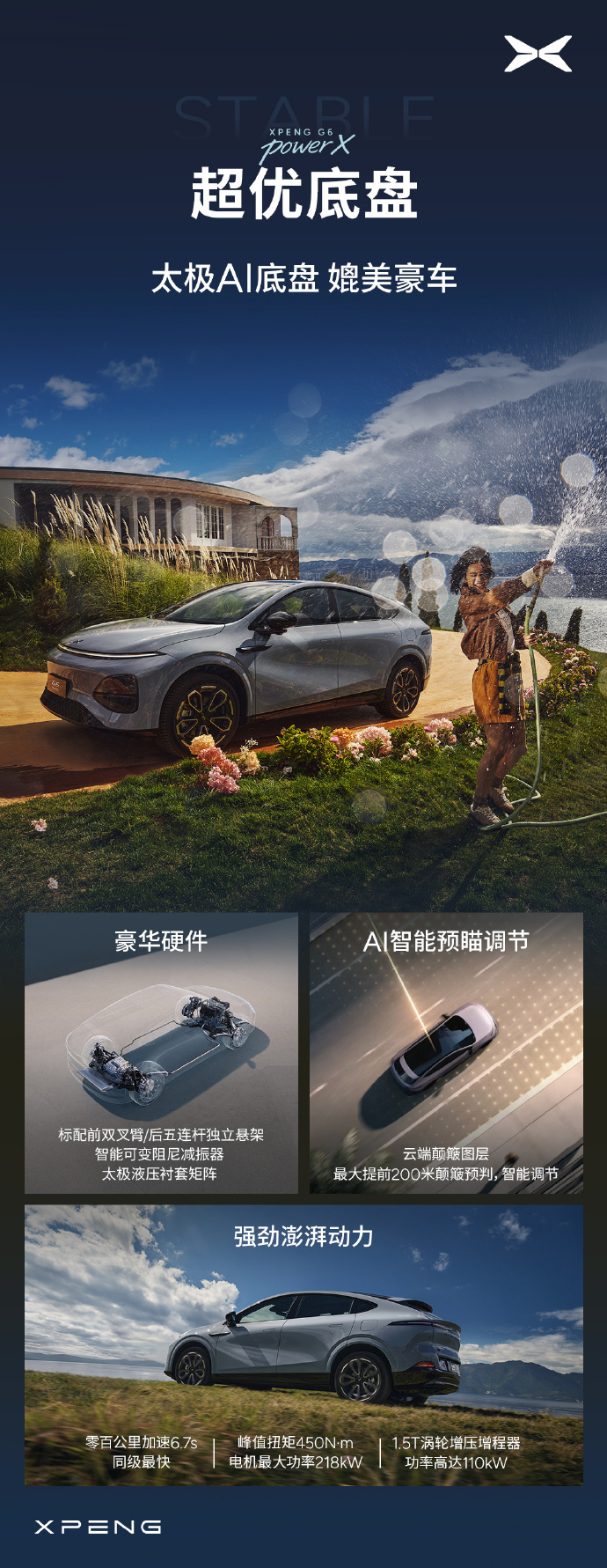 小鹏G6系列车型全系都标配了800伏高压架构以及5C极速充电智能电池技术,能够实现在短短12分钟内为车辆补充314公里的续航里程。此外,该车还搭载了第二代VLA智能驾驶系统,这套系统的计算能力达到了每秒2250万亿次操作(TOPS),并具备在时速高达130公里的情况下紧急制动的能力以及在爆胎情况下的稳定行驶功能。