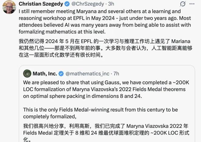 该公司由 xAI 的前联合创始人、Morph Labs 首席科学家 Christian Szegedy 创立。Gauss 是一款专为协助数学专家进行形式化验证工作而设计的自动智能体。