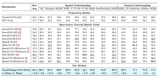 由于这些设计特点,JoyAI-Image-Edit在2D语义感知、3D空间理解和4D时空推理等多个领域的测试中均表现出色,在9个与空间理解相关的基准测试上得分最高,平均分达到了64.4,并且追平了封闭源代码的Gemini-2.5-Pro模型。