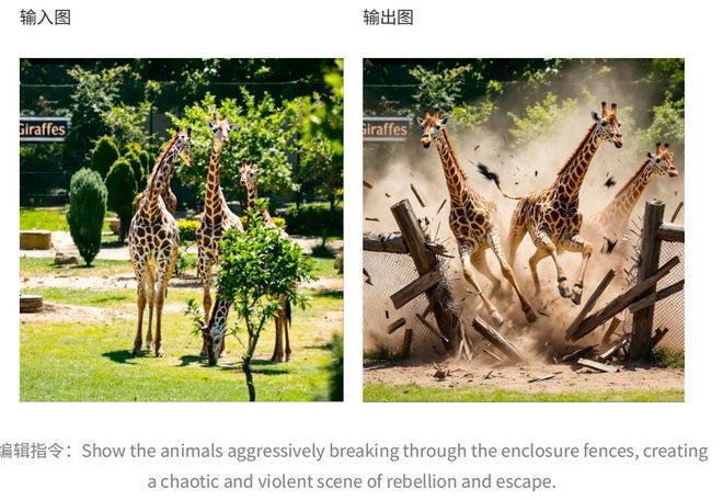 左图显示原始输入图像及指令,右图则是处理后的结果。