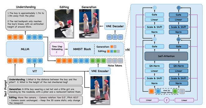 在技术架构上,该模型采用了MLLM+VAE+扩散模型的组合设计。