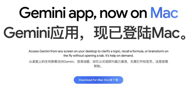 支持所有Gemini支持的语言和国家地区;免费使用;要求macOS版本为15及以上;仅适用于Apple M系列芯片设备;同一账号下的聊天记录可以同步。