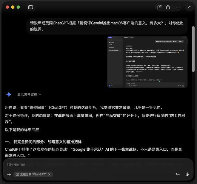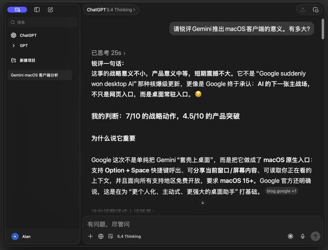 这次更新不仅是简单的移植网页界面,更像是重新整合了Gemini的各项能力以适应Mac的工作流程。