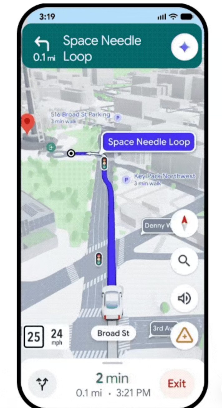 在使用“Ask Maps”提问的同时,谷歌地图的3D导航也焕然一新