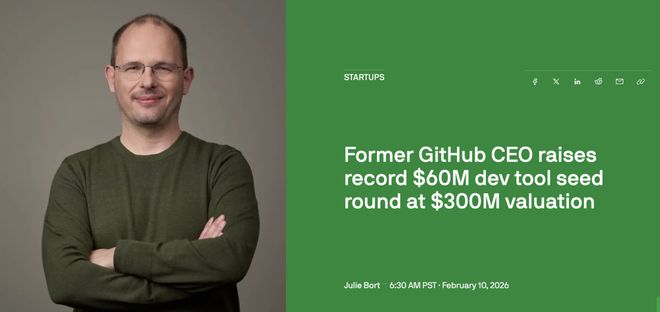 https://techcrunch.com/2026/02/10/former-github-ceo-rAIses-record-60m-dev-tool-seed-round-at-300m-valuation/