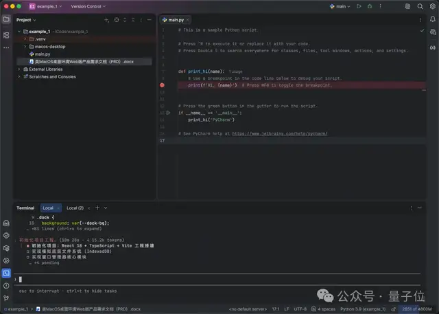 瞧,待它分析完任务之后,自己就开始唰唰地编程了: