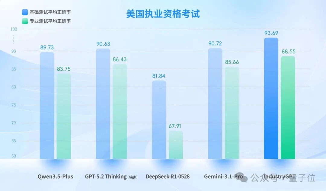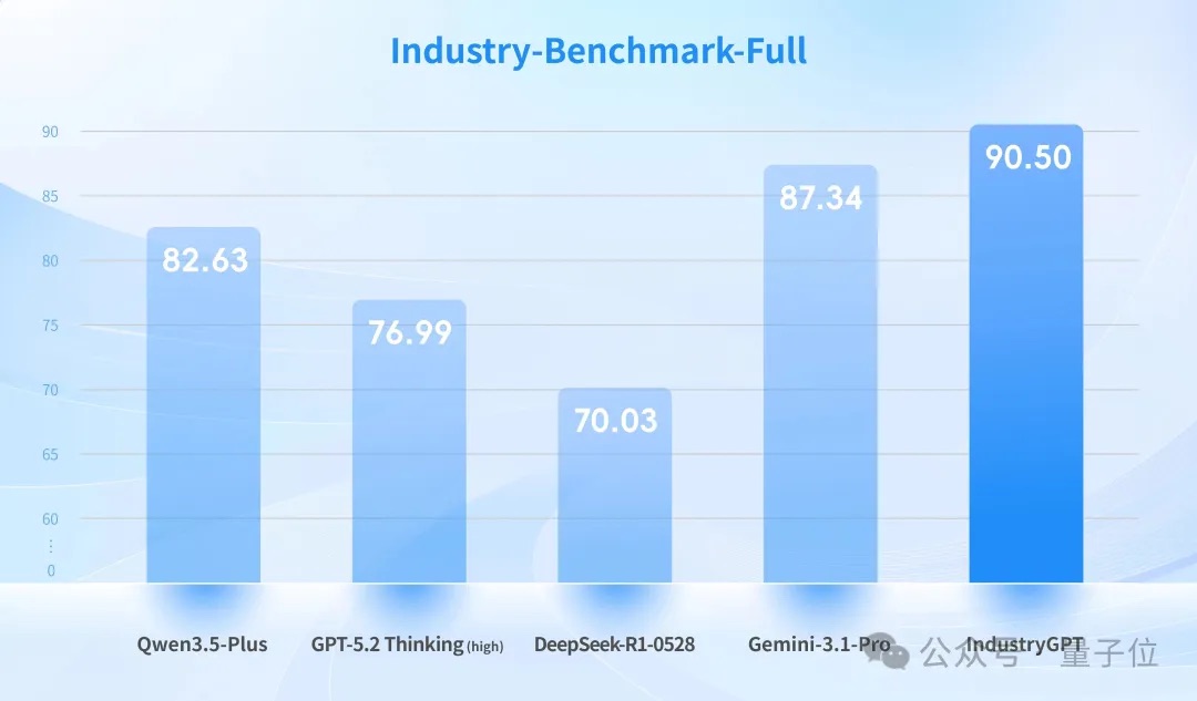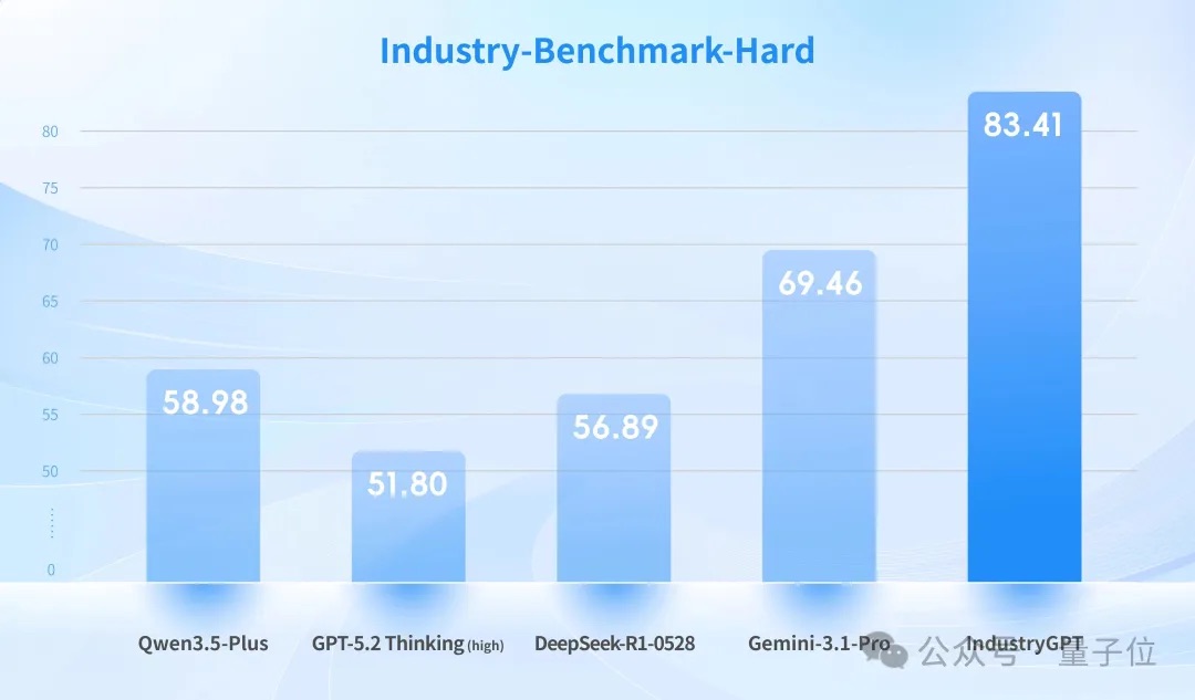 在这三次考试中,IndustryGPT不仅在通用榜单上名列前茅,在涵盖万条基准的工业测试和执业级工程评估中也击败了GPT-5.2 Thinking (high)和Gemini-3.1-Pro等竞争对手。