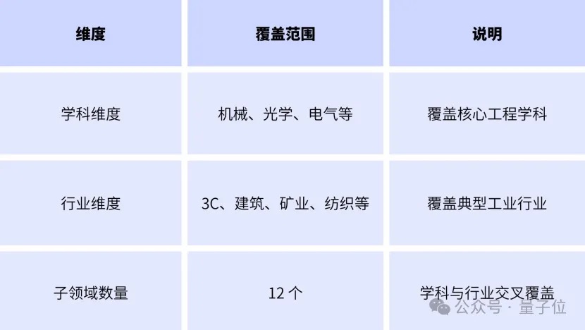 思谋自建了一套系统化的工业基准评测数据集,涵盖了包括机械、光学、电气在内的多个核心工程学科和典型工业领域。